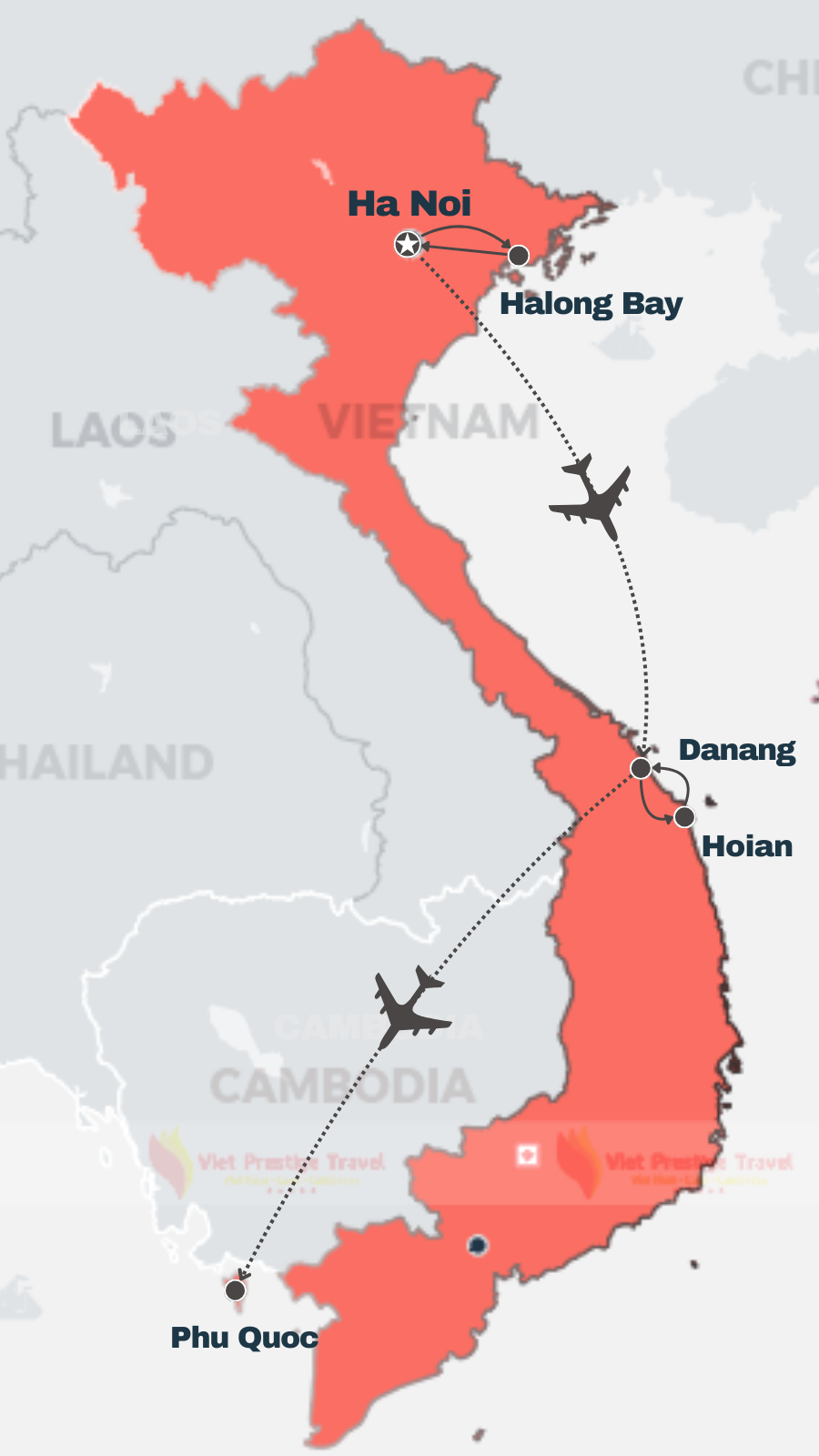 Discover the best of Vietnam in 10 days with our Muslim-friendly tour package, thoughtfully crafted to provide a seamless and enriching experience. Journey through Hanoi’s historic landmarks, cruise the breathtaking Halong Bay, and stroll through the charming streets of Hoi An. Relax on the pristine beaches of Da Nang and Phu Quoc, where tranquility meets natural beauty. Throughout your trip, savor flavorful halal meals and enjoy convenient access to mosques, ensuring your spiritual and dietary needs are always met. This journey offers the perfect harmony of cultural exploration and peaceful retreats, designed with your comfort in mind.
